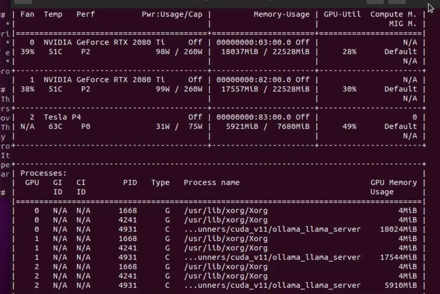 你的硬件配置对于设定上下文窗口大小至关重要。以我的配置为例:两张2080ti和一张P4,总共52GB显存。在这种配置下,我能够将Ollama的qwem2:72b模型(默认q4_0量化)上下文窗口开到11k(最多11600)。如果要进一步将上下文窗口扩大到128k,全开的话,显存需求会暴增至约82GB左右,基本上需要一台4卡服务器才能支持。