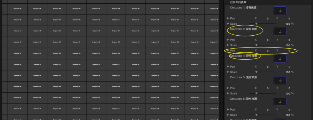搞定之后,重启fcp,参数面板就会连续显示 Dropzone 1-7,不再断号。